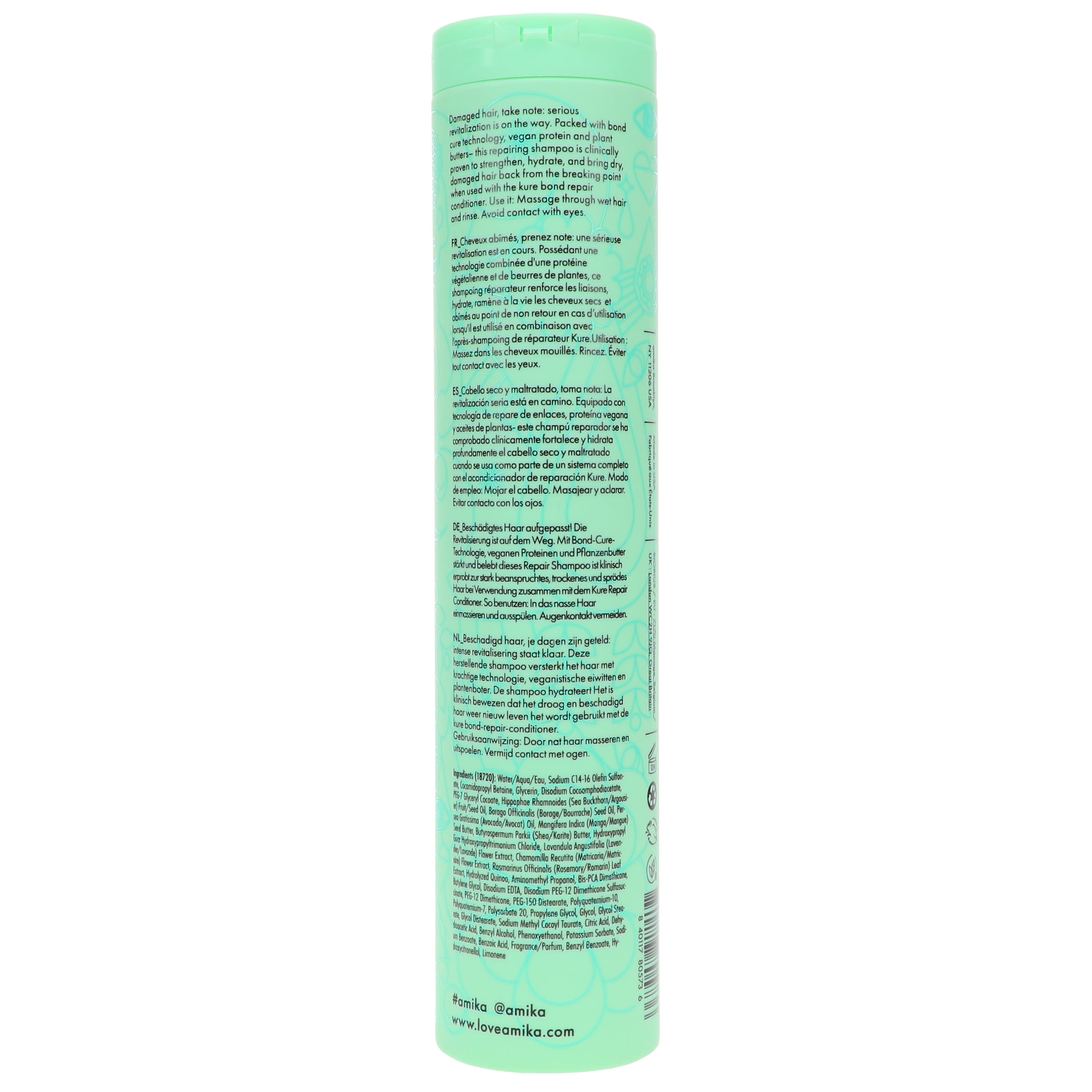 - Amika The Kure Repair Shampoo 9.2 oz revitalizes damaged hair.