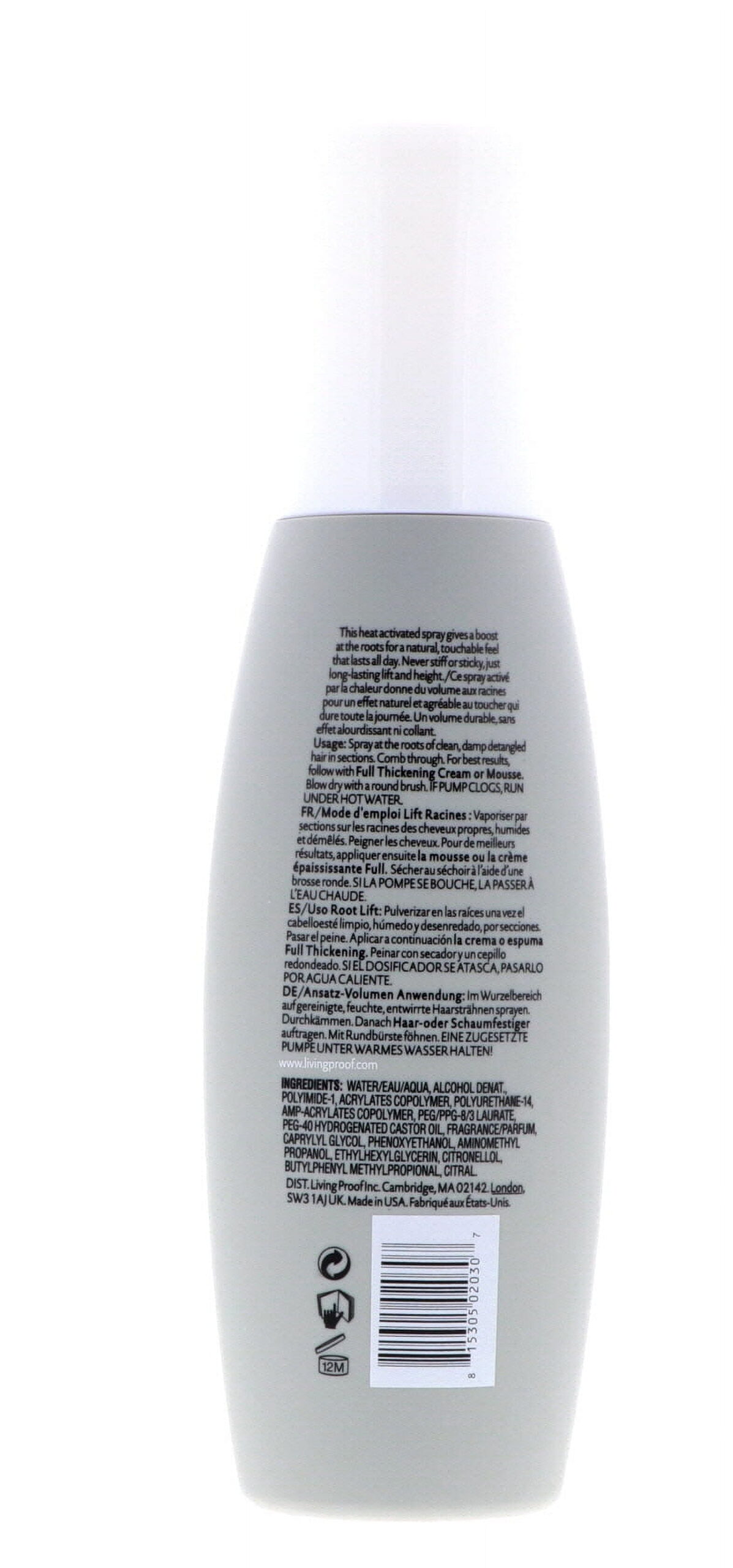The Living Proof Full Root Lift Spray is a powerful volumizing spray that provides lift and fullness to your hair from the roots. This lightweight spray is designed to give your hair long-lasting body and height without weighing it down. It is formulated with a blend of ingredients that enhance hair thickness and texture, resulting in a natural-looking, voluminous style. The spray is suitable for all hair types and is free from sulfates, parabens, and phthalates.