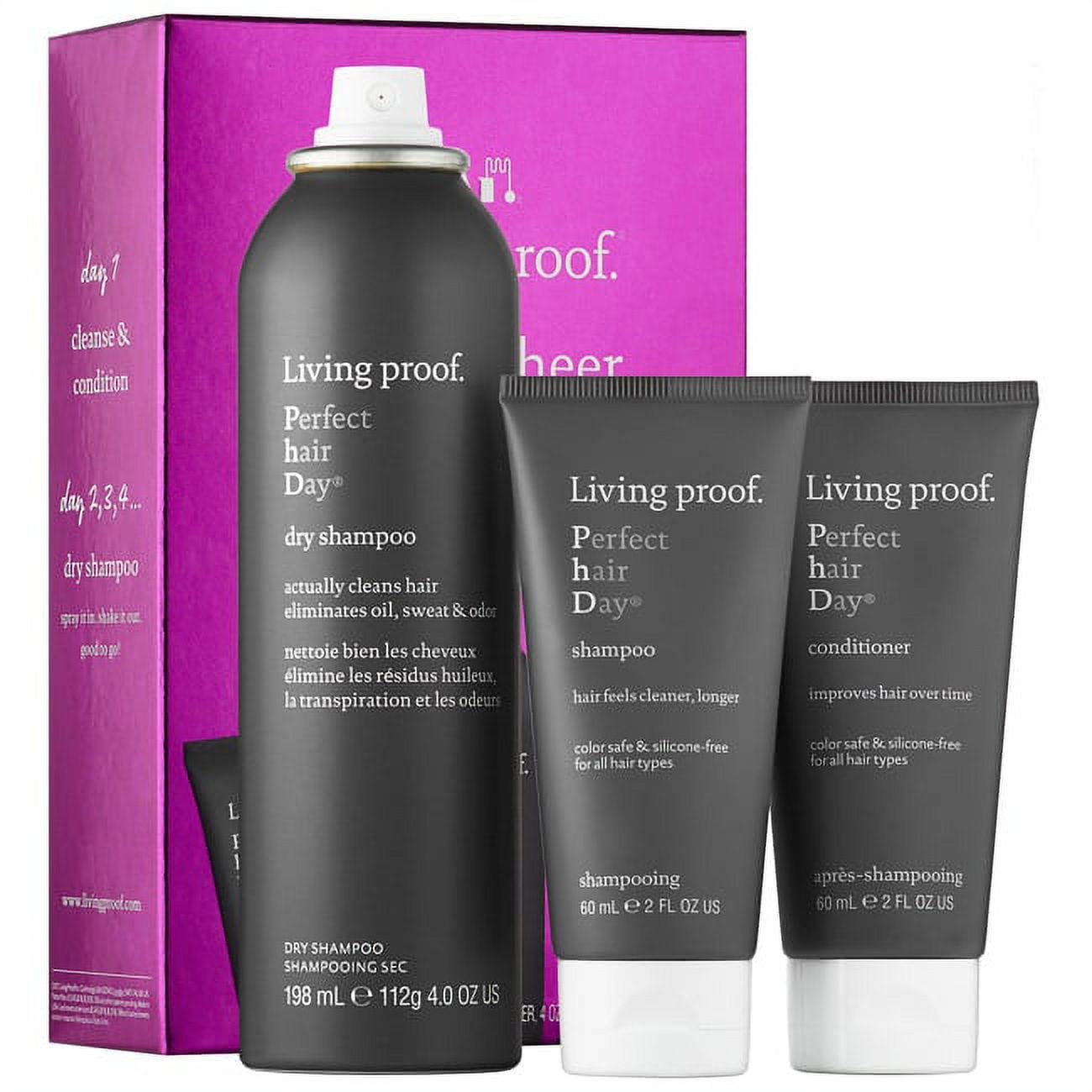 - 1 x Perfect Hair Day Dry Shampoo (4 oz.): A dry shampoo that absorbs and removes oil, sweat and odor to make hair look, feel and smell clean.