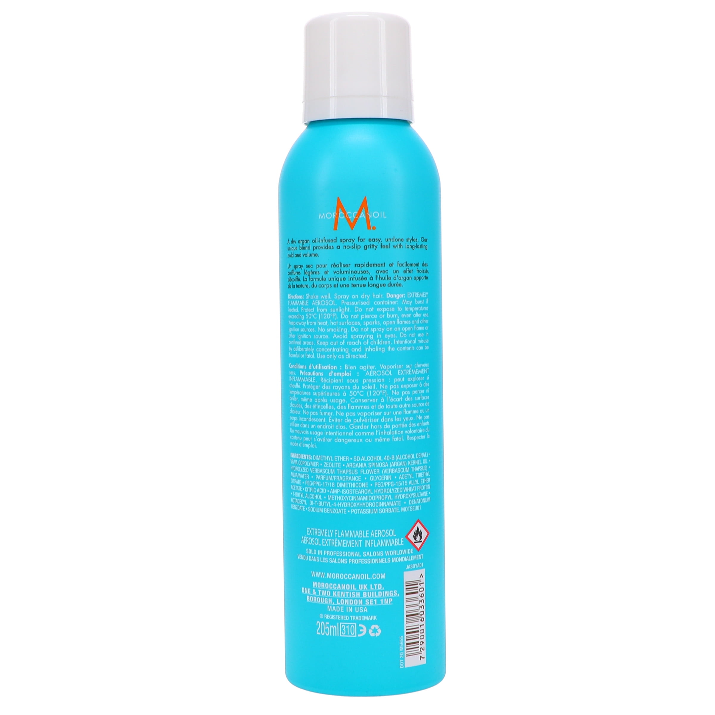 This dry argan-oil infused texturizing spray delivers effortlessly undone, carefree styles that last all day long. A matrix of high-performance resin and zeolite particles form bonds between hairs to create a volumized, textured hold with a gritty, dry finish. Perfect for use as a pre-styling prep spray (think updo’s and no-slip braids). Shake well and spray on dry hair!
