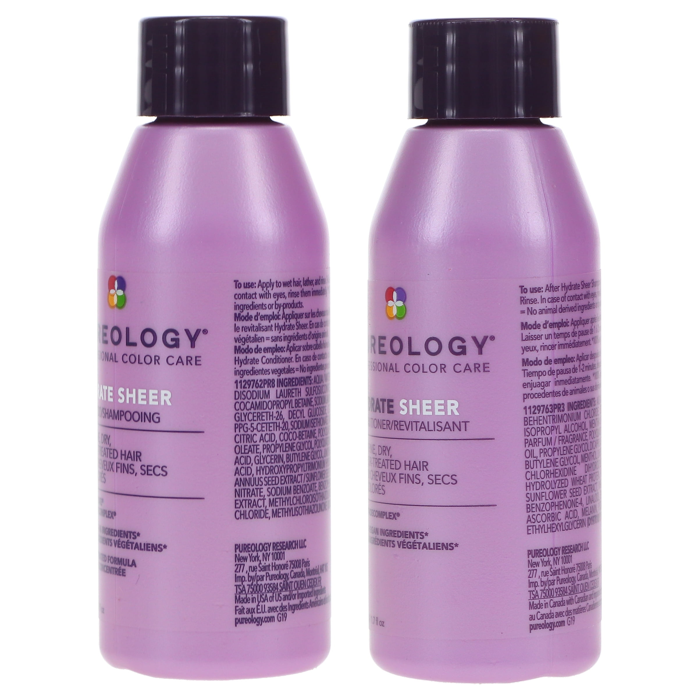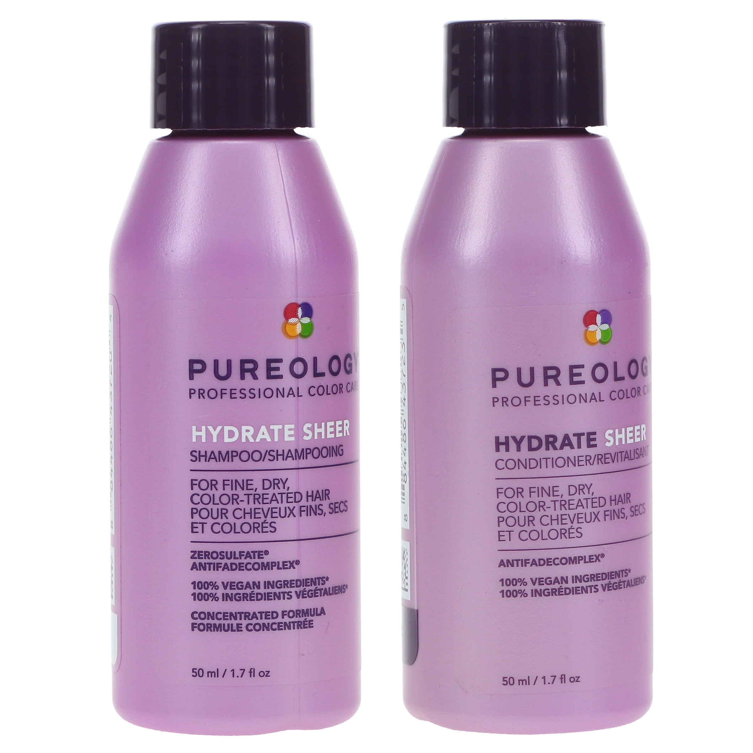 - Pureology Hydrate Sheer Shampoo 8.5 oz and Conditioner 8.5 oz Combo Pack is formulated to transform dry fine locks into voluminous tresses.