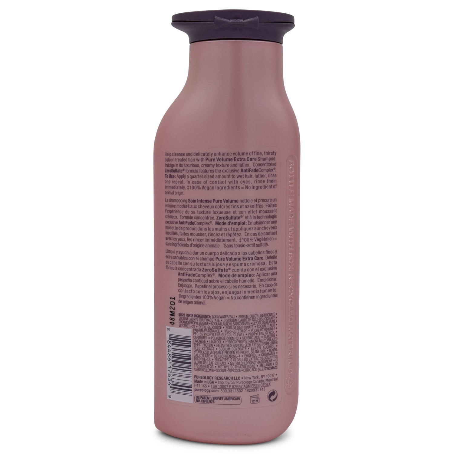 What it is: Delicate concentrated formula helps cleanse and enhance volume of fine, extra-sensitized colour-treated hair while delivering additional detangling and slip. Indulge in its luxurious, creamy texture and lather. What it does: Lightly balanced cationic polymers gently cleanses to remove volume inhibiting build up and oil, which providing detangling without weighing the hair down. What else you need to know: Sulfate-free, Salt-free, Colour-preserving formula derived from coconut, corn and sugar. Natural plant extracts of Lavendar, Ylang Ylang and Sandalwood. Signature aromatherapy blend of Amber, Mandarin and Ylang Ylang. Product Options Available are as follows: Size : 1.7 oz – Pureology Pure Volume Extra Care Shampoo; Size : 33.8 oz – Pureology Pure Volume Extra Care Shampoo; Size : 8.5 oz – Pureology Pure Volume Extra Care Shampoo;